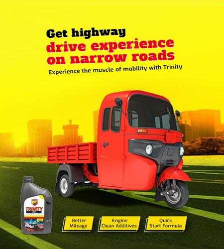 ARKOS 3 wheeler engine oil TRINITY offers excellent drive feel, smooth gear shifting and better mileage in diesel auto-rickshaw and goods carriers.